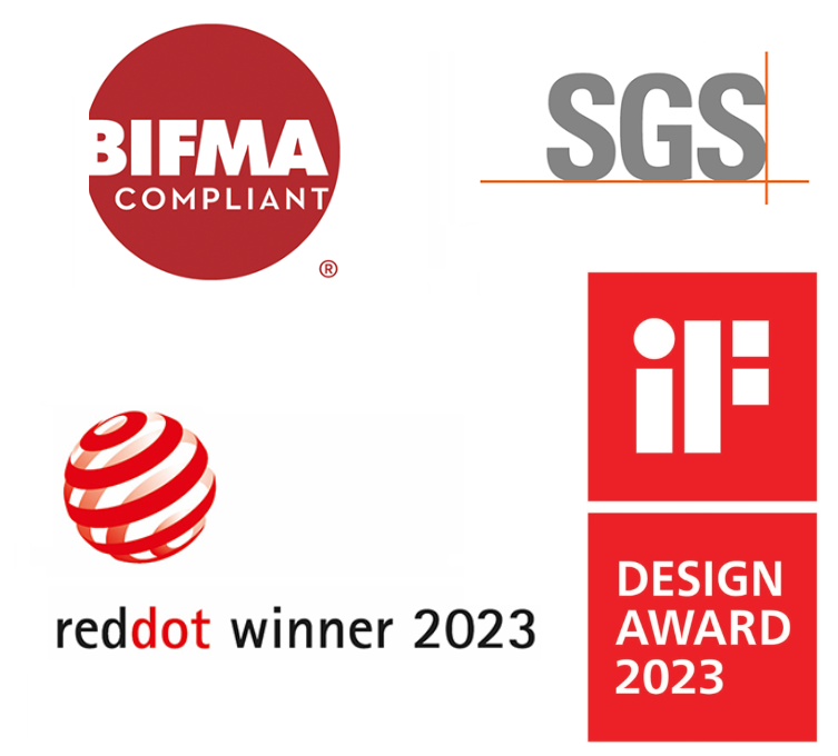 Výrobek splňuje standardy asociace BIFMA (Business and Institutional Furniture Manufacturer’s Association) a je certifikován společností SGS. Získal také prestižní ocenění Red Dot Winner 2023 a iF DESIGN AWARD 2023, která patří mezi nejvýznamnější světová ocenění v oblasti designu.