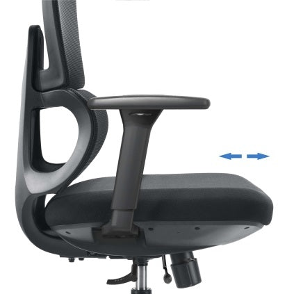 Sedák židle je ergonomicky tvarovaný, vyrobený z vysokohustotního litého polyuretanu, který si dlouhodobě zachovává svůj tvar a nedeformuje se. Potah splňuje přísné odolnostní a certifikační normy. Díky možnosti nastavení hloubky sedáku lze snadno upravit vzdálenost od opěrky zad, čímž se snižuje tlak na stehna a zajišťuje pohodlné sezení pro osoby různého vzrůstu.