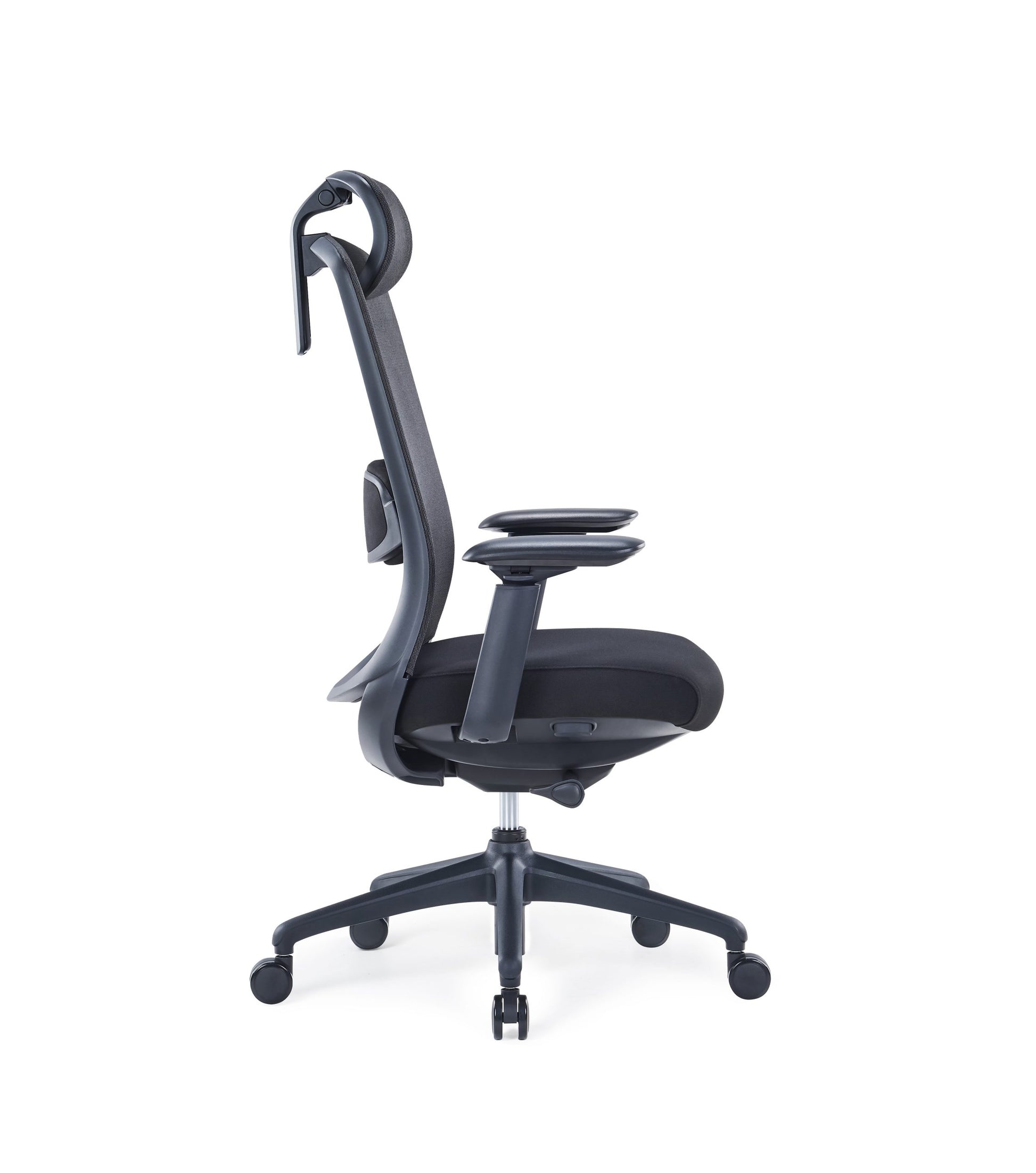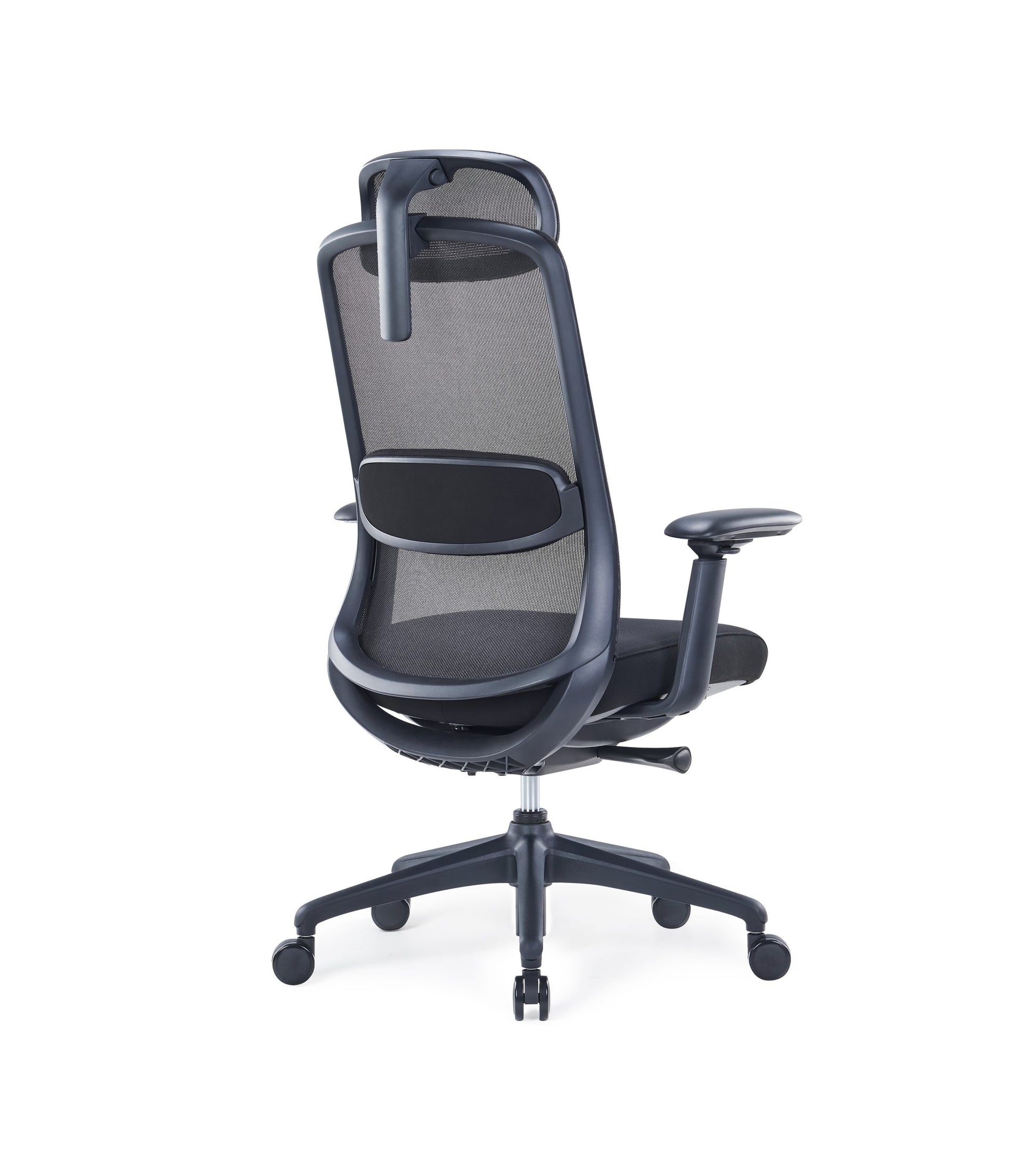 Funkce nastavení bederní opěrky umožňuje uživateli přizpůsobit její výšku, čímž se snadno přizpůsobí přirozenému tvaru páteře. Ergonomická kancelářská židle je vybavena měkkou, polstrovanou bederní opěrkou, která poskytuje vyváženou podporu spodní části zad – bez nadměrné tuhosti či nepohodlí.Mobilní základna s kolečky