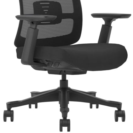 Bederní opěrka této kancelářské židle je pevně integrována (nelze nastavit) do spodní části opěradla a poskytuje lehkou oporu v bederní oblasti. Je navržena tak, aby přirozeně kopírovala tvar páteře a nabídla pohodlí bez přílišného tlaku – ideální volba pro uživatele, kteří preferují jemnější ergonomickou oporu zad.