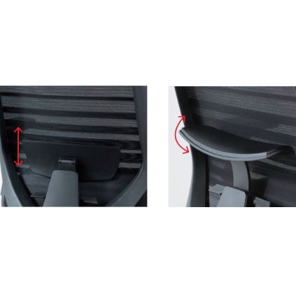 Zádová opěrka této ergonomické kancelářské židle je vybavena funkcí výškového nastavení bederní opory, která umožňuje snadné přizpůsobení opěrky anatomickému tvaru lidských zad.