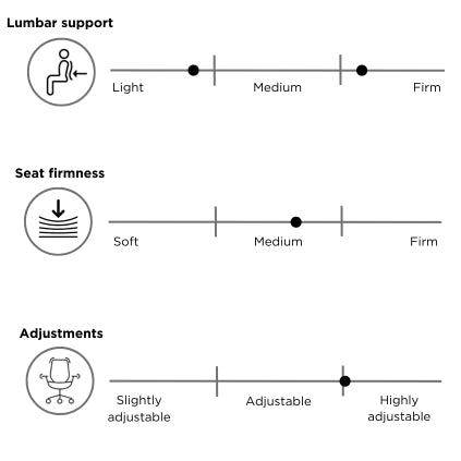 Nastavitelná hloubka bederní opěrky umožňuje zvolit úroveň podpory od jemné po pevnou.
