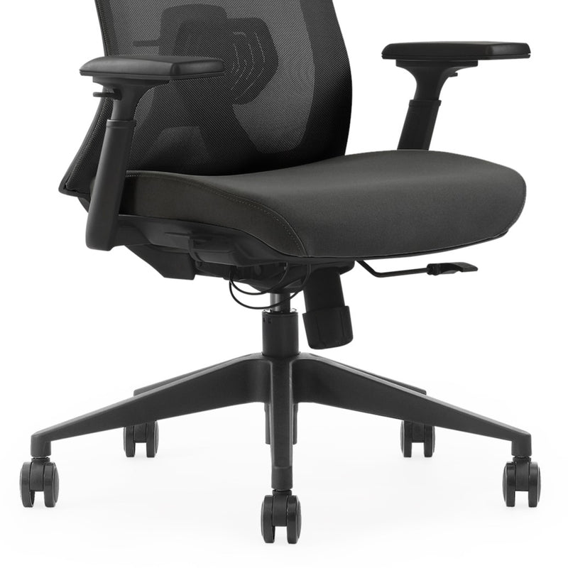 Sedák židle je ergonomicky tvarovaný, vyrobený z vysokohustotního litého polyuretanu, který si dlouhodobě zachovává svůj tvar a nedeformuje se. Potah splňuje přísné odolnostní a certifikační normy. Díky možnosti nastavení hloubky sedáku lze snadno upravit vzdálenost od opěrky zad, čímž se snižuje tlak na stehna a zajišťuje pohodlné sezení pro osoby různého vzrůstu.